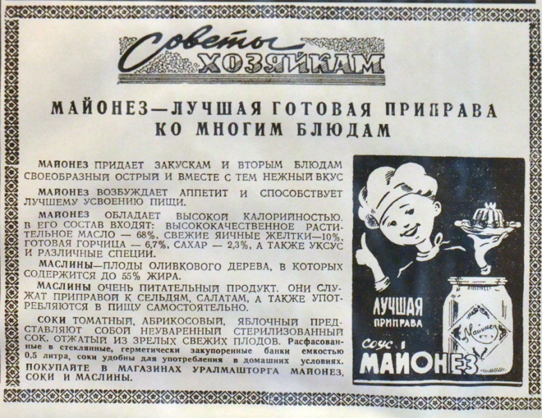 майонез, как уже мы видели на красочном рекламном плакате, лучшая готовая приправа ко многим блюдам