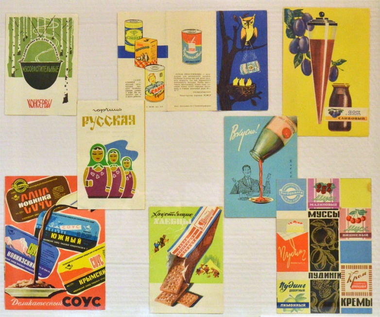 конфеты разные, всякие — обертки для конфет это невиданное раздолье для рекламы. Кто не обратит внимание на яркую обертку, а многие их и коллекционировали (в отличие от бумажек с консервных банок, бывших предметом коллекционирования гораздо реже).