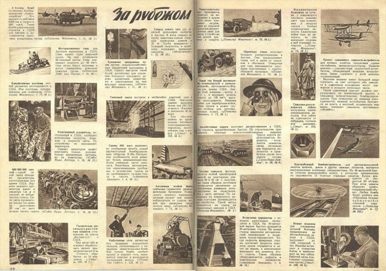 Да-да, именно так, и даже обложка выдержана в этом стиле! Конечно, потом военно-оборонные темы полностью вытеснили этакое, да и журнал сильно похудел — но этот номер ещё был «мирным». Хотя подписчики, наверное, получали его, когда война уже началась.