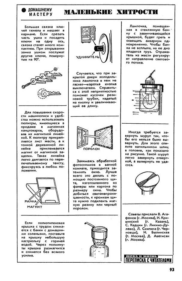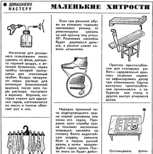 Журнал «Наука и Жизнь» до сих пор сохраняет свои традиции и публикует в каждом номере «маленькие хитрости». Наиболее полную коллекцию журналов можно посмотреть здесь opoccuu.com/nauka-i-zhizn.htm, а так же здесь много информации о нашем прошлом.