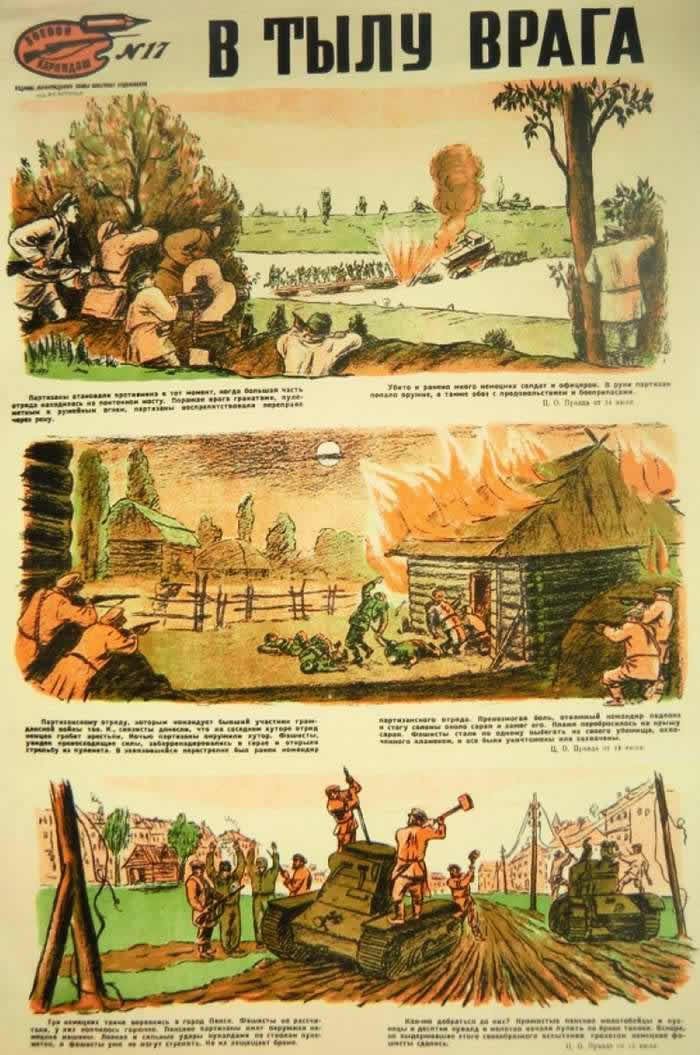 Очень интересные плакаты. А вообще-то партизаны внесли большой вклад в дело Победы над врагом. У моей подруги повесила бабушку немчура за связь с партизанами, она пекла им хлеб.