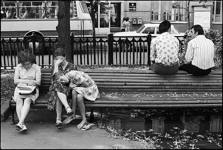 Очень странные снимки — бомжей тогда не было! Милиция сразу бы забрала. Не помню чтобы кто-то на скамейках лежал и на земле один до 85 года. При Горби конечно стало полно бездомных и безработных. Люди стали безразличными. Неприятные фото. Таких в каждой стране можно наснимать и сейчас.