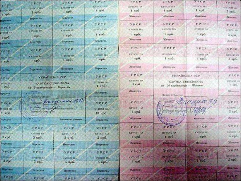 Насчет не совсем верных фотографий. Некоторые уже не СССР, но вот талоны на продукты появились уже при Брежневе.