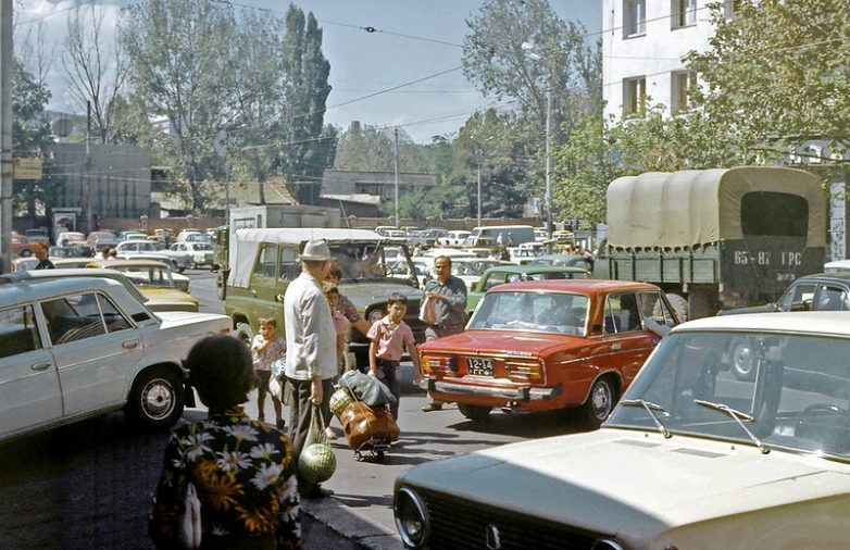 Снимки вполне подтверждают известное мнение, что по уровню жизни Грузинская ССР была на одном из первых мест в Союзе. Совсем неплохо тогда жили. Судя хотя бы по количеству автомобилей.