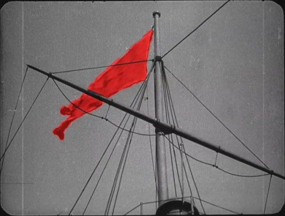 “Броненосец Потемкин” также считается первым цветным российским фильмом: Эйзенштейн лично кисточкой на киноплёнке раскрасил флаг, который подняли над кораблём восставшие матросы, в красный цвет.