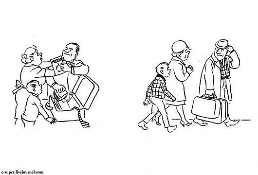 Я не поняла с первого просмотра, где-то с 3-4захода.Мне понравилось.Этот человек очень наблюдательный, плюс большое ему.Я бы даже не сказала, что это карикатуры, скорее — проза жизни нашей. У него острый глаз, все подметил — даже Сталина с Хрущевым, как из рога вино пьют — здорово, здорово, здорово.Не поняла, единственную картинку, предпоследнюю, на пляже…