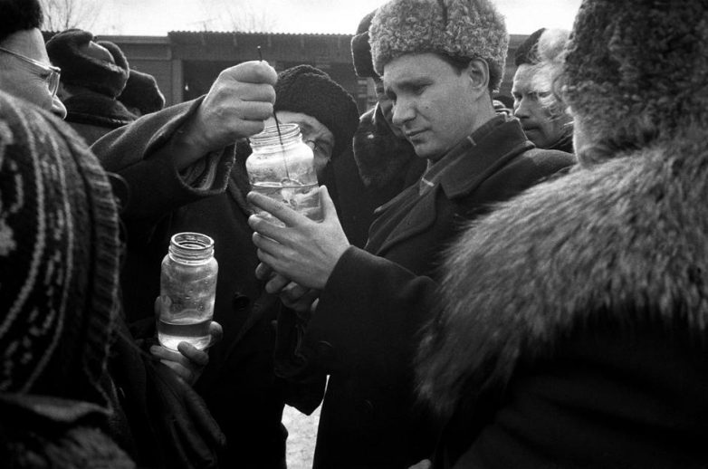 Трудящиеся с интересом наблюдают за работой художника.Во второй половине 1950-х годов, после смерти Сталина и XX-го съезда КПСС «железный занавес» немного приоткрылся, и у представителей западной прессы появилась возможность посещать страны социалистического лагеря.