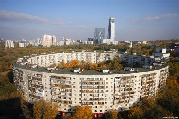 Таких всего два, и оба они построены в Москве. Первый – в 1973 году, второй – в 1979. Каждый из домов состоит из 26 подъездов и 912 квартир. Диаметр круга – 155 метров. Интересно, почему строительство «круглых» домов не получило распространения в других городах Советского Союза? В чём заключались трудности строительства подобных сооружений? В чём их недостатки?
