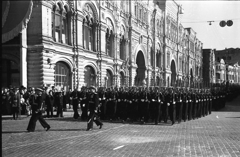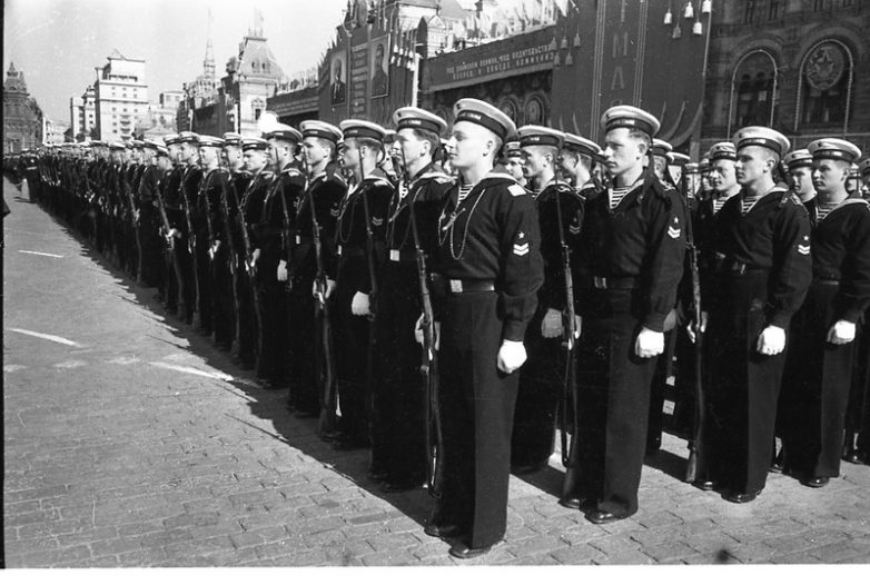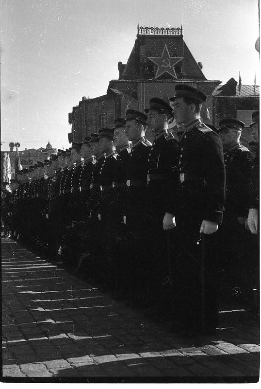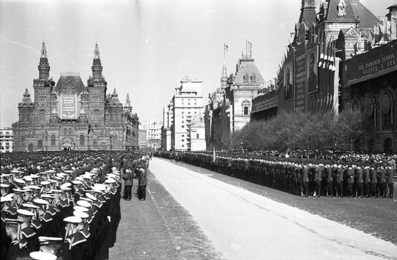 Фотографии с парада на Красной площади, 1 мая, вроде как 1951 года (ещё с воздушной частью). Тут вы увидите и новейшие на тот момент образцы вооружений, а так же — лично Иосифа Виссарионыча и Лаврентия Палыча.