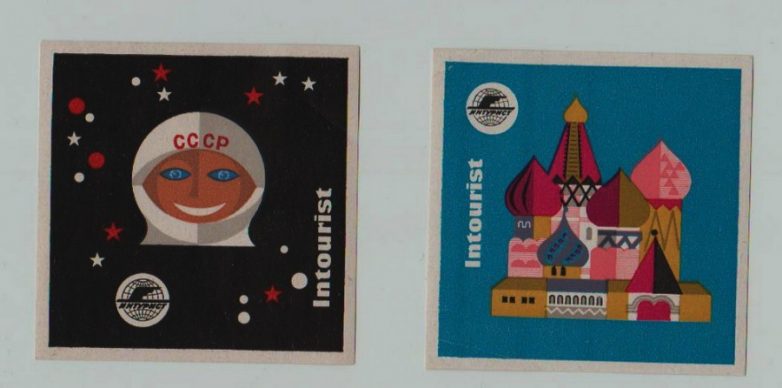 А это наклейки на чемоданы, они были в комплекте с буклетами Интуриста, имеют слой клея на обороте.