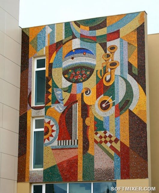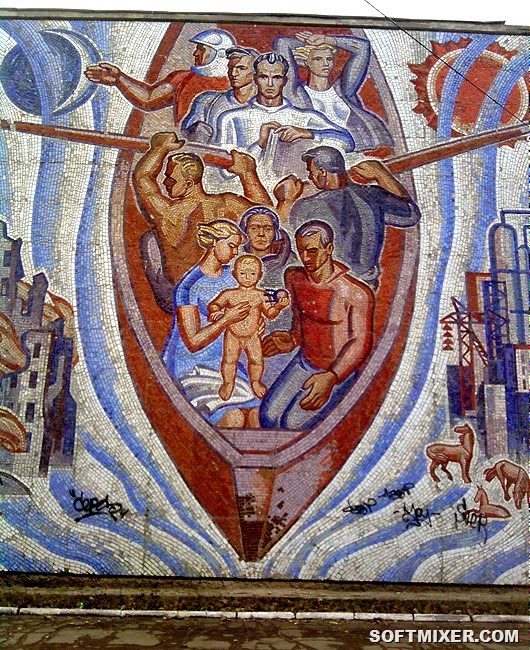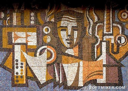 Везде, где только можно, применялась мозаика. Это наверно была визитная карточка времен Советского Союза. И даже сейчас в большинстве крупных городов бывшего СССР можно найти сохранившиеся произведения искусства, которые напоминают нам о былом величии Советского Союза.