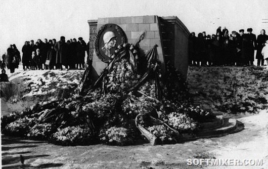 Перезахоронение Александра Матросова в Великих Луках в 1948 году. По воспоминаниям старожилов, на эту церемонии вылезли посмотреть пленные немцы, лагерь которых находился в Великолукской крепости. Во время прощального салюта всех их как ветром сдуло с крепостных валов.