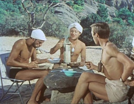 Где снимать самое синее в мире Черное море мое? Конечно же, в Крыму. Лагерь «дикарей» расположился в Судаке, на территории завода шампанских вин в Новом Свете. Да, место для съемок, конечно, выбрали еще то, особенно для вольнолюбивых киношников. Тем более жила съемочная группа во дворце князя Голицына, прямо над подвалами завода шампанских вин. А литровая кружка этого самого шампанского стоила тогда 45 копеек.