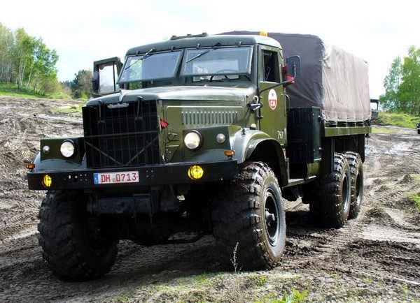 Урал-375 – еще один полноприводный грузовик, который массово использовался не только для гражданских, но и армейских нужд. Три ведущие оси и огромные колеса, а также большая грузоподъемность позволяли возить на нем по самым плохим дорогам и в отсутствие оных не только людей и грузы, но даже системы залпового огня «Град». Однако, существенные технические недочеты, к примеру, ненадежный, но затратный бензиновый двигатель, а также проблемы в тормозной системе привели к тому, что Министерство обороны уже в 1982 году начало сменять этот грузовой автомобиль на Урал-4320.