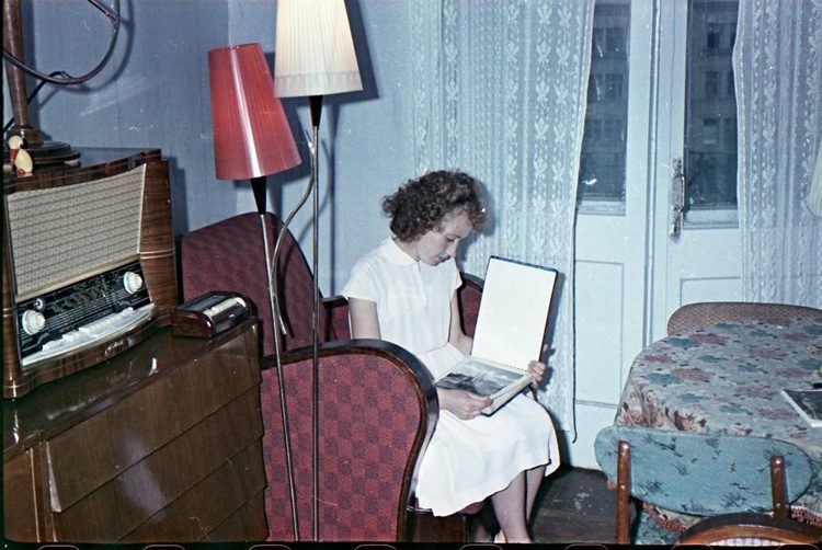 Я согласен с тем. что это комната в коммуналке. Да, семья делала фото — типа, вот как у нас все хорошо, какие мы богатые… ) Как преуспели. Чистая постановка — но без подсвета. Значит, снимал любитель. Есть еще одна важная деталь… Большая комната в хрущобе в однушке была 16 м… Но потолки-то… Ах… Другие детали тоже мы перебрали, но забыли одну: туалет с ванной и кухня. Нет их на этих фото! Неужто моложены ими бы не похвастались??? Нет, явно — коммуналка, сталинка, рекламные фото не для печати, а для отсылки родне. )) Но именно это и ценно в этих фото!)))) Очень ценно!))