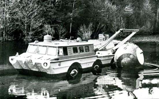 Амфибия — это БАВ army.armor.kiev.ua/engenear/bav.shtml Большой плавающий автомобиль, в отличие от МАВ cris9.narod.ru/isv_mav.htm. Делался на базе узлов ЗиС-151. Шнекоход входил в состав системы поиска спускаемых аппаратов, и перевозился на колёсной машине putnikost.gorod.tomsk.ru/index-1276194110.php