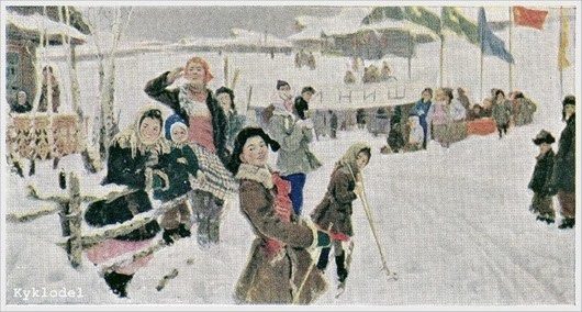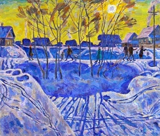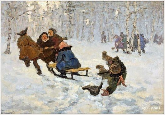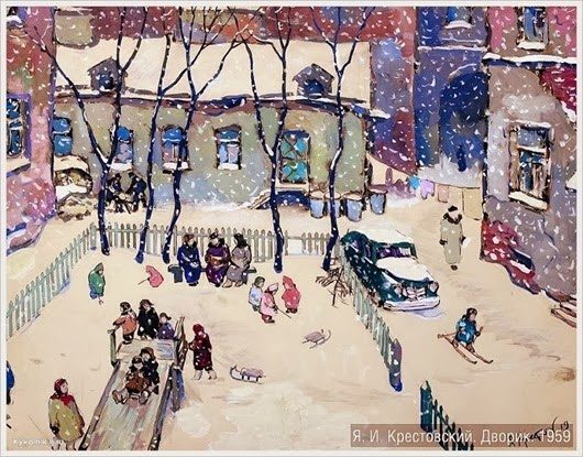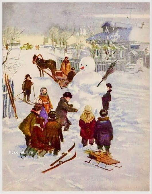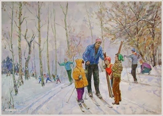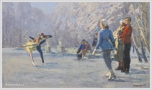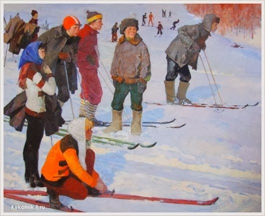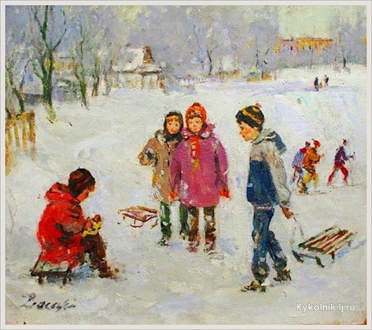 Мне очень понравилось, что я не почувствовала идеологической нагрузки — просто зима, просто дети, просто жизнь — такая, как есть — должна быть! В худ.-ом плане все картины очень — гармоничны, зимними тонами и оттенками передается настроение — морозная свежесть и детский азарт. Хочу особо выделить две картины — Калинычева К.И. — «Зимний день» — своего рода сказка и Попов И.А.- «Наш двор» — своей многоплановостью, то есть в произведении еще очень много картин и действия — и получился наш двор...)) А также Нечитайло В.К. «Солнце»...)) — без слов. Как итог — реализм с элементами импрессионизма.Молодцы наши советские художники — обошли цензуру...)) Спасибо за внимание и извините, что много — ну уж больно мне нравится худ.-ое искусство...))
