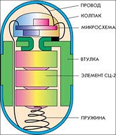 Сама таблетка представляет собой металлическую оболочку с пластмассовой перемычкой в центре. При ее попадании в кислую среду желудка происходит замыкание электрической цепи, и таблетка начинает работать.