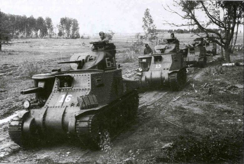 Танки «Тетрарх I» 151-й танковой бригады Северокавказский фронт, март 1943 года. На лобовой броне сохранились английские обозначения.