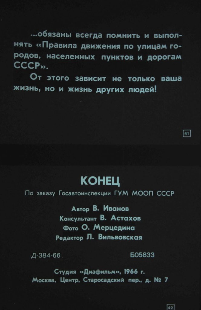 Диафильм по безопасности дорожного движения. 1966 год.