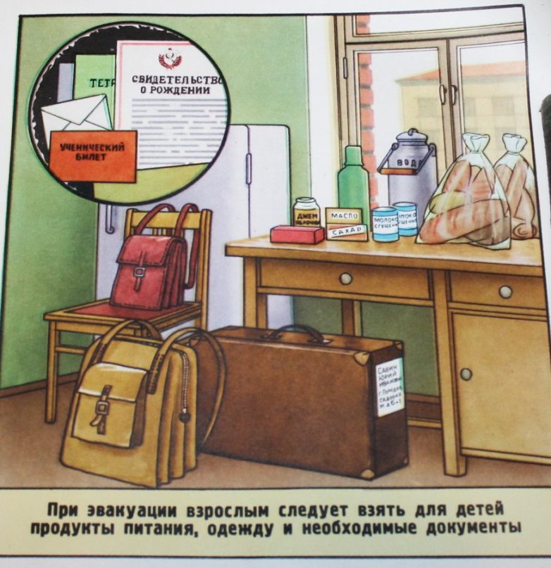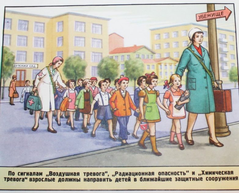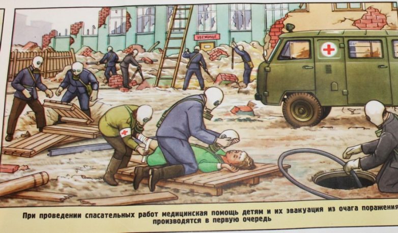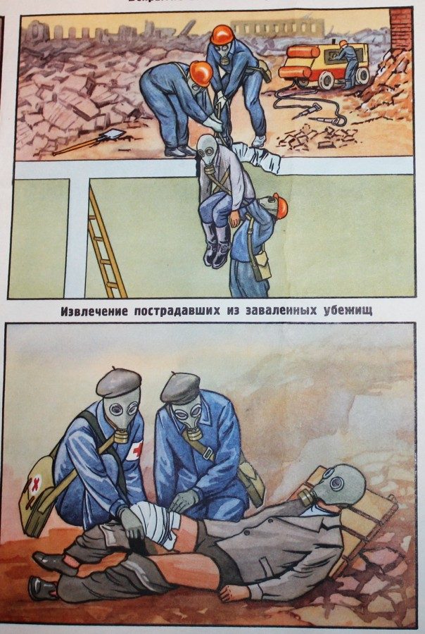 Фрагменты плакатов для подготовки населения по защите от оружия массового поражения. 1980 год.