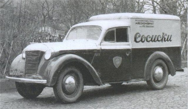 В 1948 году на конвейер встает первенец грузопассажирского направления МЗМА — дерево-металлический фургон модели 400-422. Ходит легенда, согласно которой на «смотре» техники в 1948 году Сталин одобрительно кивнул, находясь подле «Буратино». Вполне возможно, вождь оценил возможность экономии дефицитного металла при производстве новой модели, что и повлияло на его решение о запуске. Так или иначе, утилитарный фургон, который использовался для инкассирования монет из телефонов — автоматов и доставки почты, продержался на конвейере до 1956 года, пройдя в 1954-ом модернизацию до версии 401-422 (мощность двигателя выросла на 3 л.с.)
