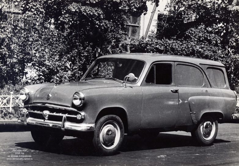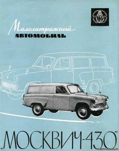 Москвич-430. Автомобиль менее харизматичный, чем «Буратино», обладавший, однако, рядом нововведений по сравнению с предшественником. В основе «четыреста двадцать третьего» лежала база уже не седана, а первого в СССР универсала Москвич-423Н. Внешне фургон, производство которого было начато в 1958 году, отличался от универсала лишь заглушками в окнах и задней двери. Позже, в 1961 году фургон получил собственные боковые панели, более угловатые подштамповки на месте окон и единый водосточный желоб по всей длине крыше.