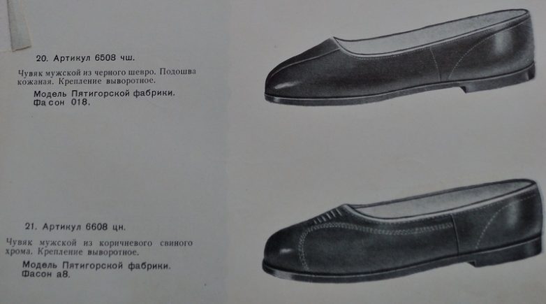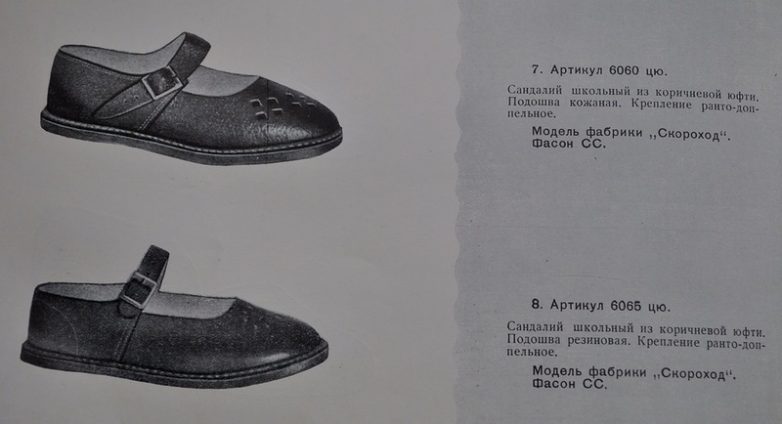 Школьные туфли. По полам не различаются. Получается, что и пионеры и пионерки носили одинаковые туфли. В описании — ошибка, указана в приклеенном листке на последней странице книги.)