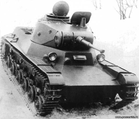 Нельзя сказать, что в 1940 году, после того как были выяснены недостатки наших новых танков, не было попыток создать новые машины. О проекте Т-34М, уже писал. Была попытка создать и новый тяжёлый танк. Получившей индекс КВ-3. В проекте этой машины была сделана попытка убрать недостатки свойственные танкам КВ-1 и КВ-2 (тот же КВ-1, но с новой башней и 152-мм гаубицей), использовали в проекте и опыт войны с финнами. Вооружить этот танк планировалось 107-мм пушкой. Однако испытания первого образца пушки прошли не удачно. Заряжающему было тяжело и не удобно работать с боеприпасом такого размера и веса. Поэтому танк представленный на испытания летом 1941 года был вооружён всё той же 76-мм пушкой. Но тут началась война и в сентябре 1941 года экспериментальная машина пошла в бой, на Ленинградском фронте. Из которого она не вернулась и официально числится пропавшей без вести. Но есть донесение одного из командиров РККА, который утверждал, что прорвавшийся в глубину обороны немцев танк был обстрелян из 105-мм немецких гаубиц. От огня которых сдетонировал боезапас. С него сорвало башню, а сам танк был полностью разрушен.