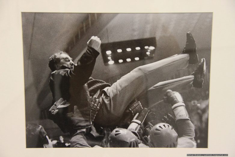 Юрий Сомов — Игроки качают тренера сборной СССР по хоккею Анатолия Тарасова после победы на X зимней Олимпиаде в Гренобле, 1968