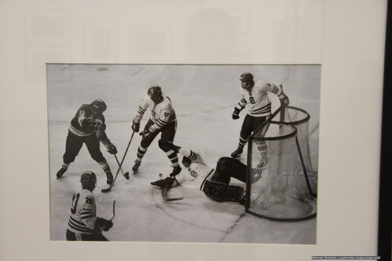 Юрий Сомов — Встреча сборных СССР и Канады по хоккею, которую выиграли советские хоккеисты со счётом 3:2. Момент, когда в ворота канадцев была забита ещё одна шайба. IX зимние Олимпийские игры, Инсбрук, 1964