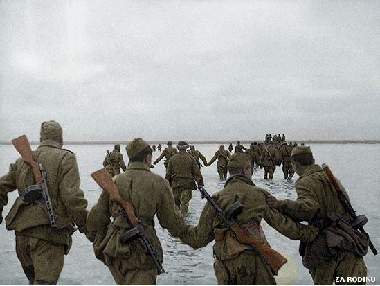 Многие фотки известные. Многие познавательные. К примеру та, где судя по всему переправа через «воду» где бойцы идут взявшись за руки… Герои!!!