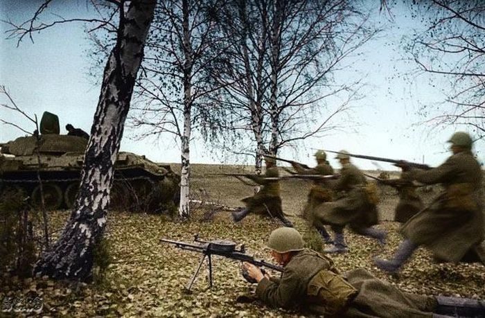 В век цифровых технологий стало возможным оживить старые черно-белые фотографии, придать им цвет. Во время просмотра этой подборки фотографий времен Великой Отечественной Войны 1941-1945гг, можно чуть-чуть иначе взглянуть на людей сражавшихся за нашу Родину.