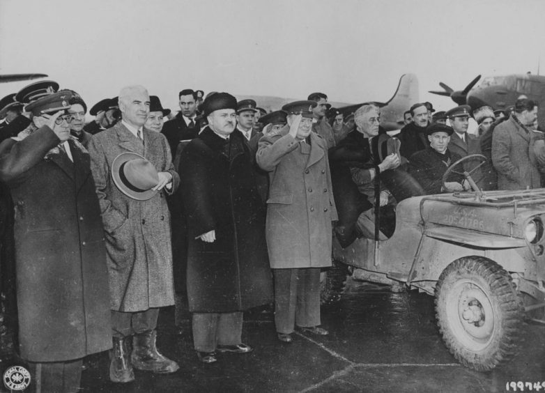 12. Стеттиниус, В.М.Молотов, У.Черчилль и Ф.Рузвельт на аэродроме Саки.