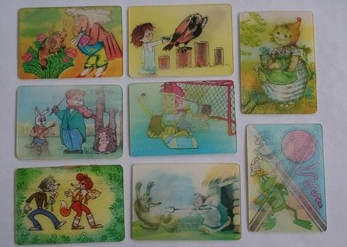 Мы их называли «переливающиеся». Повернешь под одним углом — одна сцена, под другим — вторая. Как мини-комиксы.