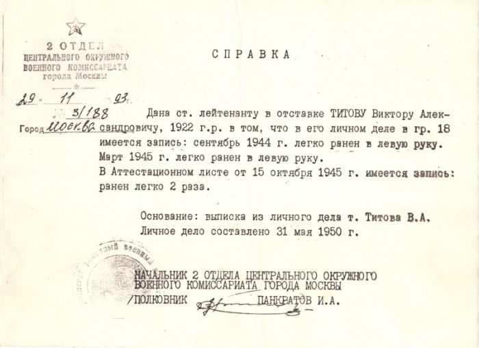 «На дороге стоит баррикада: листы шифера сложены на высоту три метра. Оборону держит «фолькштурм». Земля по обе стороны дороги затоплена водой. Наш офицер, это был Титов, пошел парламентером к баррикаде и привел с собой 28 немецких мальчишек с оружием, все 1929 года рождения, среди них несколько раненых. Молодые пацаны, все стрижены под полубокс. Пришел начальник штаба Барановский, посмотрел на них. Приказал забрать у немцев оружие и распустить всех по домам, что и было сделано…».