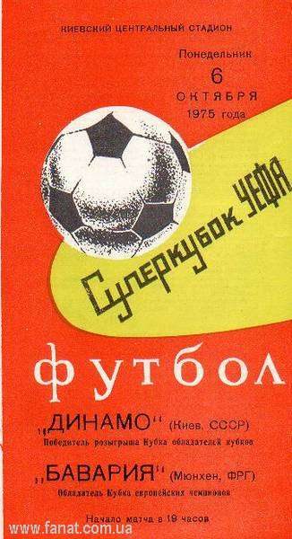 6 октября 1975 года киевское «Динамо» под руководством Валерия Лобановского одержало победу в двухматчевом противостоянии с мюнхенской «Баварией» в борьбе за Суперкубок УЕФА.