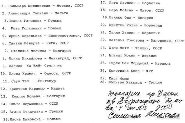 В 1989 году в гостинице Космос (Москва) состоялся 1-й Международный Конкурс Красоты «Мисс Очарование». В нем принимали участие девушки из ФРГ, Норвегии, Турции, Польши и естественно СССР. Победу одержала Митлем Хакарар — девушка из Турции.