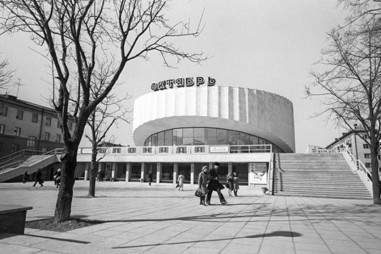 Кинотеатр «Октябрь» в Минске, Белоруссия. Минский кинотеатр «Октябрь» построен в 1975 году на месте деревянного кинотеатра «Зорка» по проекту архитектора В.Малышева. Кинотеатр открылся премьерой фильма «Блокада». Зал в «Октябре» — самый большой в Белоруссии, он вмещает 1340 человек.