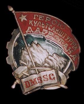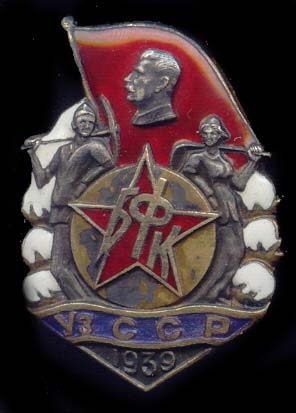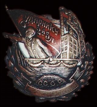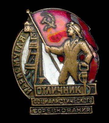 Странно: рассказывают, что в СССР почти не было нагрудных знаков, кроме военных и обезличенных учебных заведений (ну, ещё были октябрятские, пионерские и комсомольские значки), и приводят кучу фото таких значков.