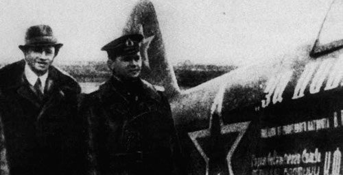 С летчиком, Героем Советского Союза, Константином Ковалевым. Истребитель Як-7 был построен на личные средства Мессинга. Надпись на фюзеляже: «Подарок от советского патриота В. Г. Мессинга Герою Советского Союза лётчику Балтики К. Ф. Ковалёву»