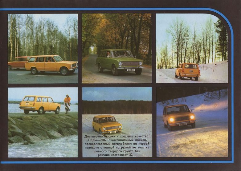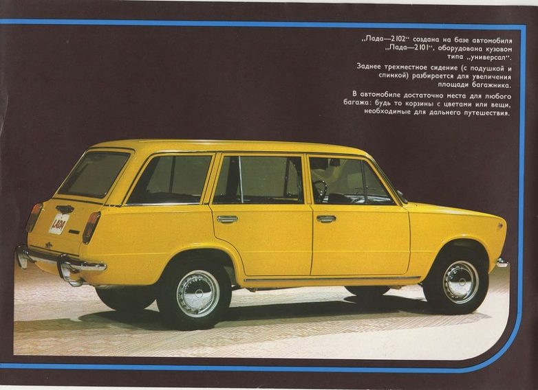 Официальный рекламный проспект В/О «Автоэкспорт», посвященный автомобилю Волжского автомобильного завода «Лада-2102» (ВАЗ-2102 «Жигули»).