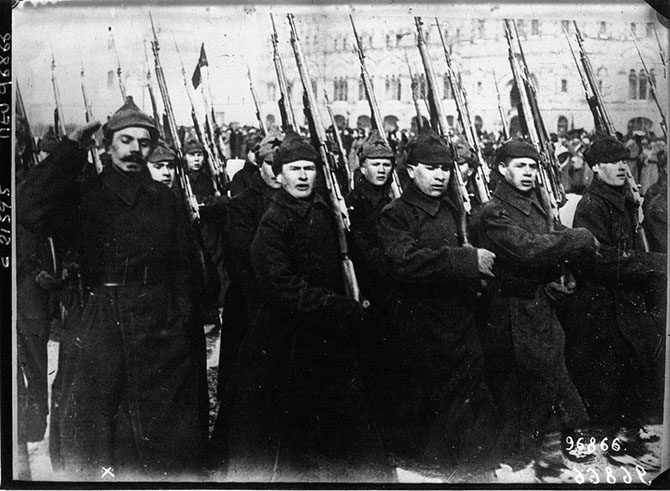 1921 г. Международный коммунистический конгресс в Москве. Троцкий и его соратники во время парада на Красной площади.