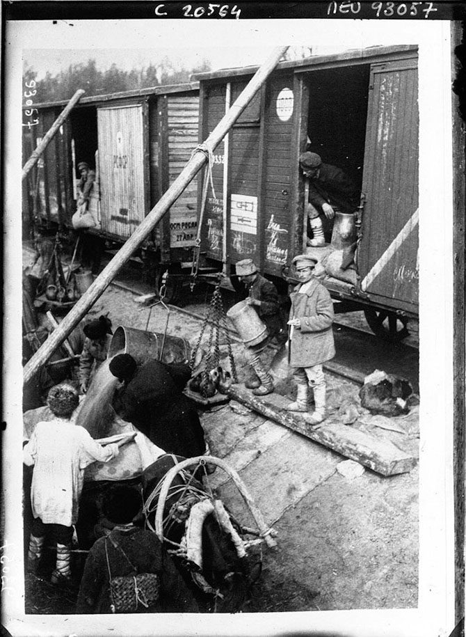 1921 г. Первый поезд с продуктами, посланный голодающим России.