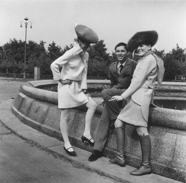 Модельер Вячеслав Зайцев с манекенщицами в Лужниках 1967
