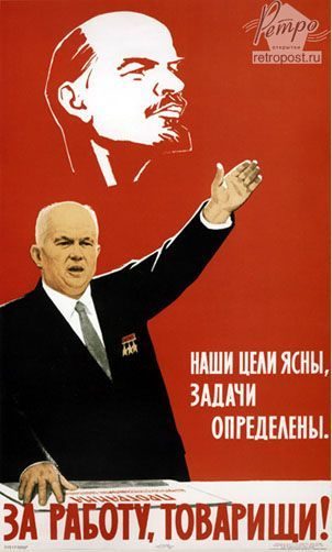 Всегда перед страной стояли конкретные и внятные задачи: победить внешних врагов, победить внутренних врагов, создать индустрию, ликвидировать безграмотность, провести коллективизацию. Все это сводилось к общей идее построения социализма, вскоре после чего началась великая война—мощный импульс созидания через разрушение. Советский народ всегда что-то строил, попутно что-то разрушая: буржуазное искусство, попутчиков, кулачество как класс. XX съезд отнял у людей идеалы—маячил призрак великой смуты: священное имя Сталина, «вождя и вдохновителя всех наших побед», было дискредитировано. Страна пребывала в неясном томлении—без опоры, без веры, без цели. Со страной поступили нечестно, сказав как не надо, а как надо — не сказав.