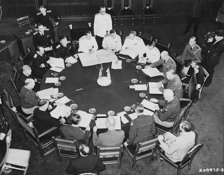 47. Делегации «Большой тройки» за столом переговоров на Потсдамской конференции.