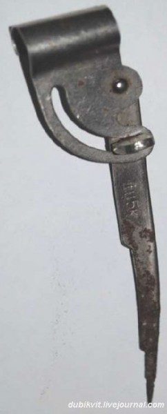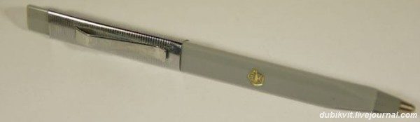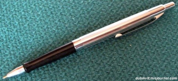 Стержень короткий и с выступом под пружину. При необходимости такой стержень вставлялся в обычную ручку, снабжаясь «удлиннителем» из спички.