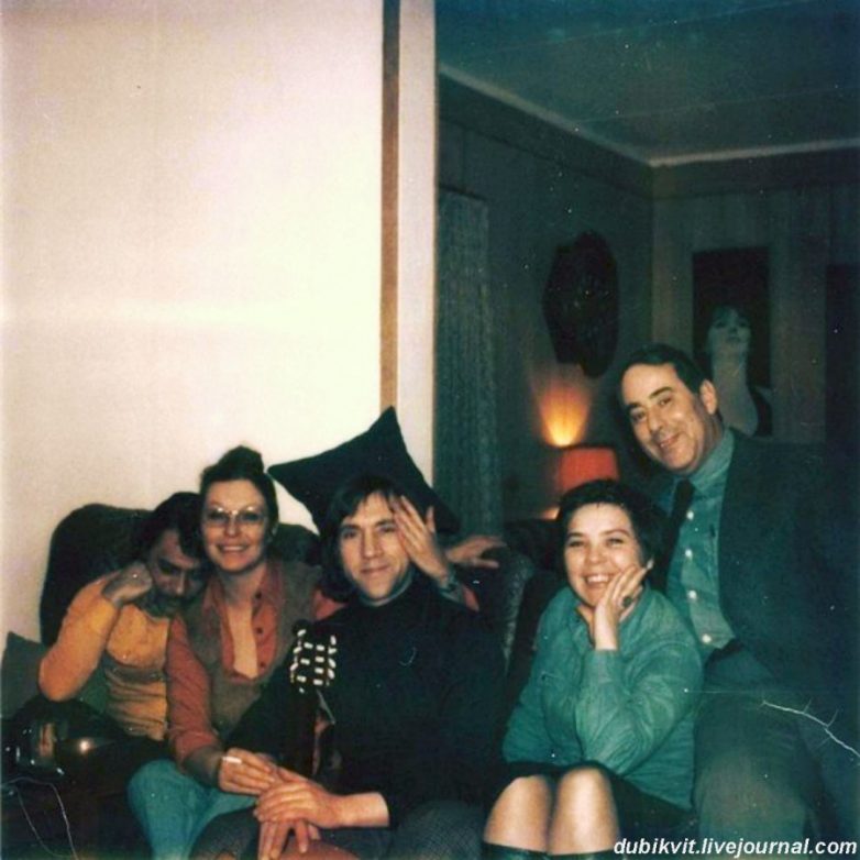 Валерий Золотухин, Вениамин Смехов, Нина Шацкая,… и Владимир Высоцкий в московской квартире. Фото Анатолия Сергеевича Гаранина, 1965 год