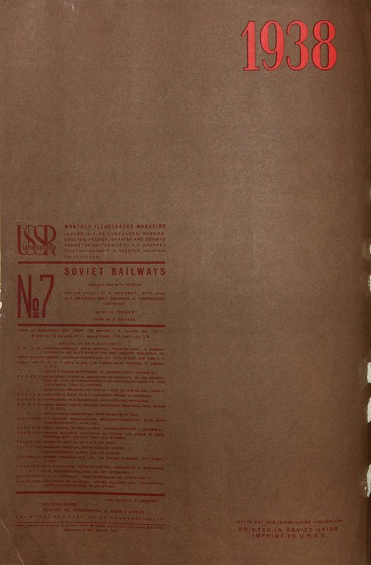 Тематический номер журнала «USSR in construction» (№7, 1938), посвящённый советским железным дорогам